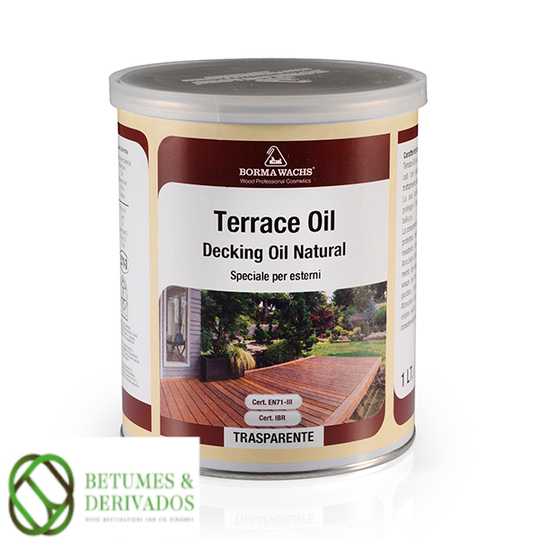 É um óleo de decks formulado com base em óleos naturais reforçados com alto coeficiente de penetração. Devido à sua baixa viscosidade, penetra profundamente na madeira e, o seu alto teor de sólidos, proporciona uma proteção eficaz e respirável, sem esfoliação e com um efeito cetim natural. Enriquecido com filtros UV e aditivos de proteção contra agentes de madeira nocivos. O produto é caracterizado por uma extrema facilidade de aplicação, mesmo se colorido, e manutenção (não requer lixamento).