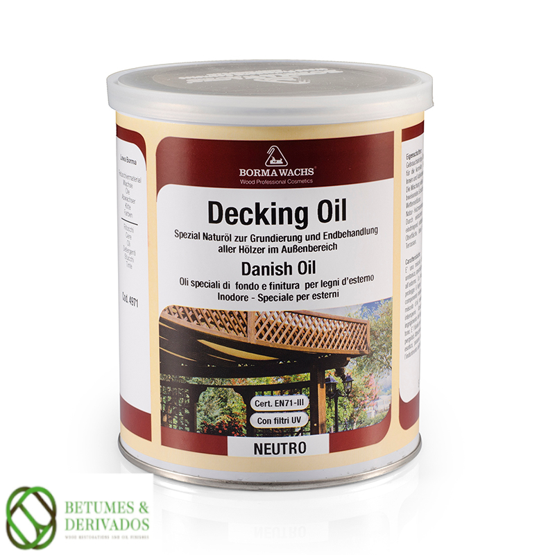 Recomendado como um acabamento transparente, pode ser aplicado sobre vários produtos coloridos para aumentar o coeficiente de proteção: Holz Lasur, Holzwachs Lasur, Óleo de teca.