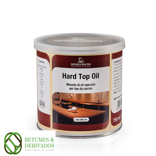 Baseado em óleos naturais e enriquecido com resinas e ceras de alta qualidade, o Hard Top Oil oferece uma excelente proteção com um efeito natural. Apropriado para mesas e tampos em geral, bem como para tábuas de corte e utensílios de madeira, sendo certificado para contato com alimentos de acordo com as normas EN 71.3, DIN53160 e DIN68861. Também disponível na versão cerosa com efeito mate natural Hard Top Oil Natural 6020. Aplicável por pincel, pano, rolo ou spray. Para um efeito particularmente curado, é aconselhável remover o excesso com um pano macio. Deixe secar completamente antes de usar o objeto tratado. As tábuas de cortar e os artigos de uso frequente podem ser lavados com água e sabão neutro; estes estarão sujeitos a manutenção proporcional à frequência de uso. Rendimento indicativo: 14-26m² / Lt